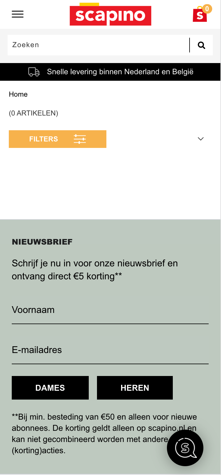 Op afbeelding 5 het zoekveld van Scapino zonder resultaten of suggesties. Op afbeelding 6 het zoekveld van de website van IKEA. Er worden suggesties getoond, wat het zoeken direct makkelijker maakt.